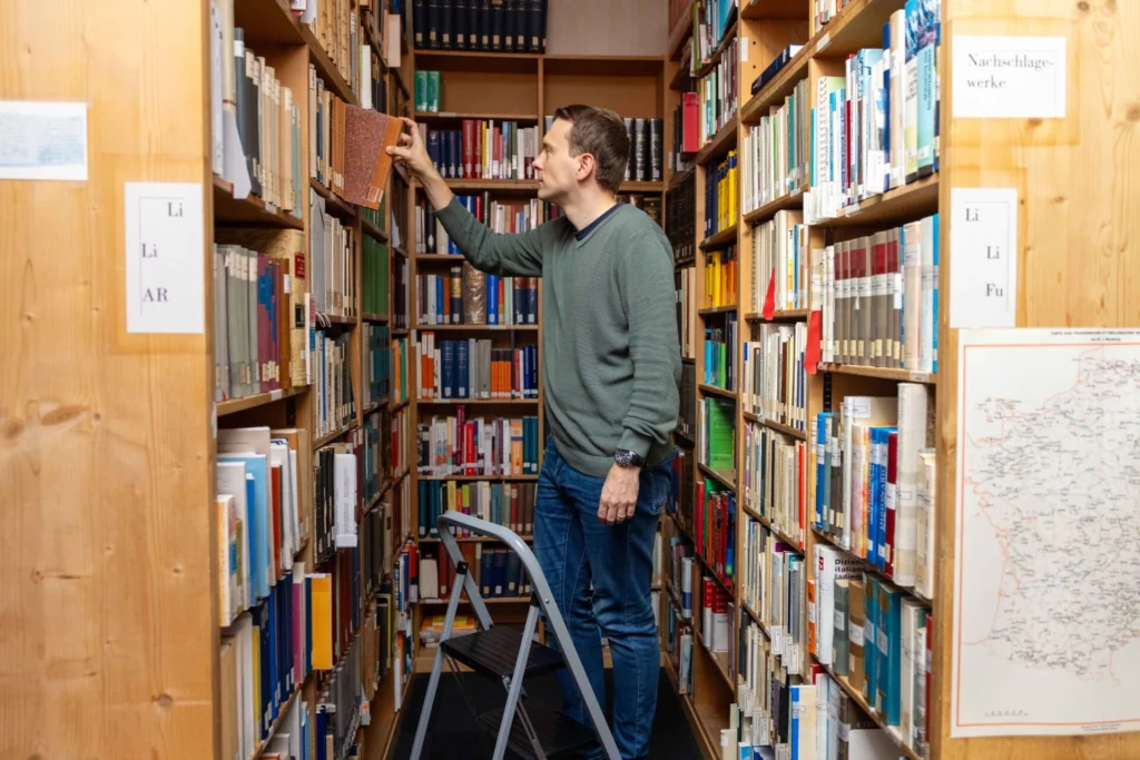 La biblioteca da l’IDRG è spezialisada sin il rumantsch, sias linguas parentas e las linguas che stattan datiers dad el. Ins chatta p.ex. vocabularis vegls, litteratura religiusa da las entschattas da la codificaziun dal rumantsch, ina vasta selecziun da litteratura scientifica, gasettas e chalenders da pli baud e dad oz sco era belletristica en tut ils idioms. En pli dispona la biblioteca da dublettas ch’ins po cumprar sin dumonda. Baininqual ovra è rara u exausta e mo consultabla tar nus.